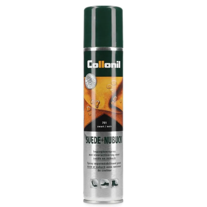 Zwarte suède/nubuck spray van het merk Collonil. De spray impregneert en verzorgt suède en nubuck. Gebruik: Meerdere malen gelijkmatig vanaf circa 20 cm inspuiten en laten drogen.