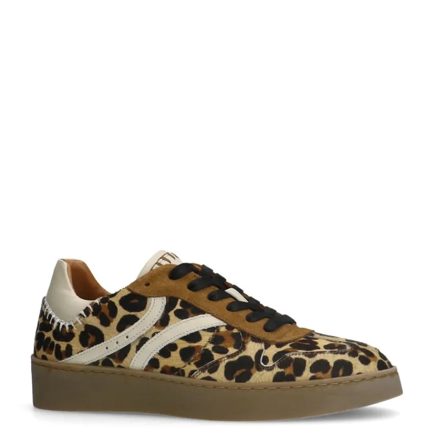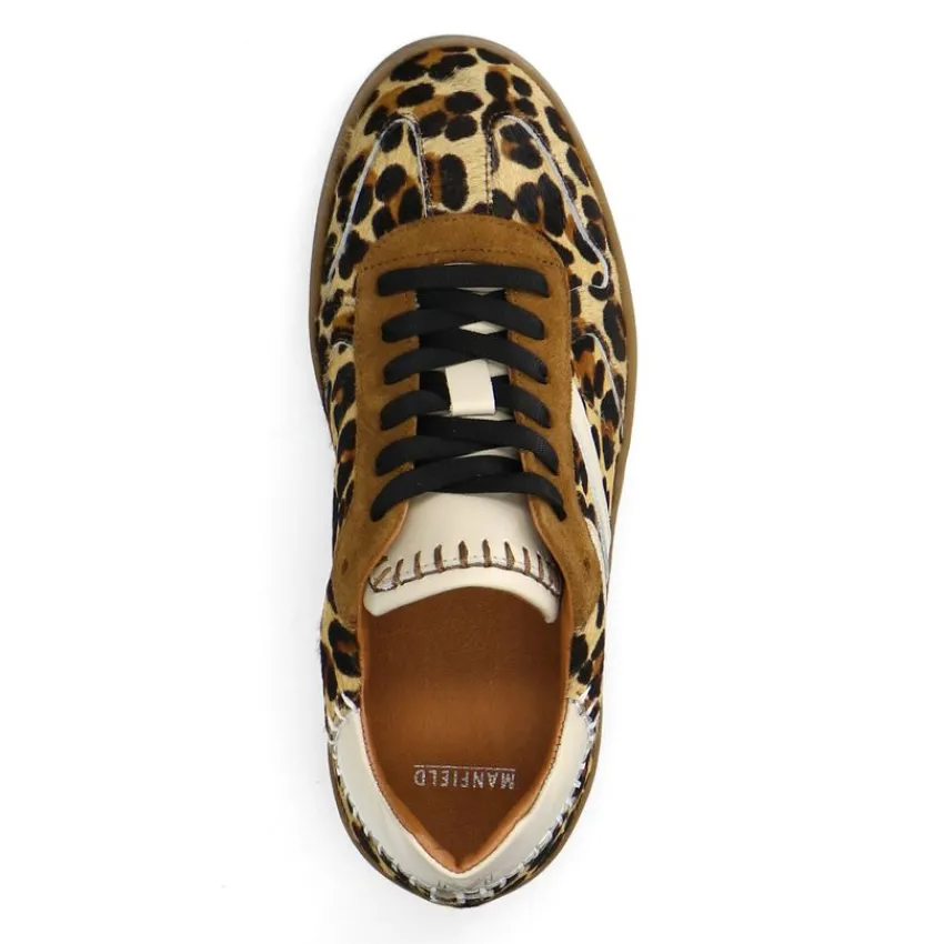 Beige leopard sneakers van Manfield met suède details en ponytail. De zool heeft een hoogte van 3 cm. We adviseren als verzorging en bescherming de Natural Trendspray of de suède/nubuck spray in transparant.