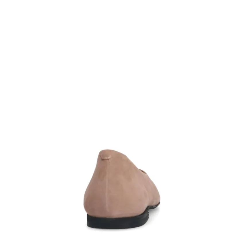 Beige suède ballerina’s met zwarte neus van Manfield. De ballerina’s hebben een platte hak van 1 cm en we adviseren als verzorging en bescherming de suède/nubuck spray in transparant.