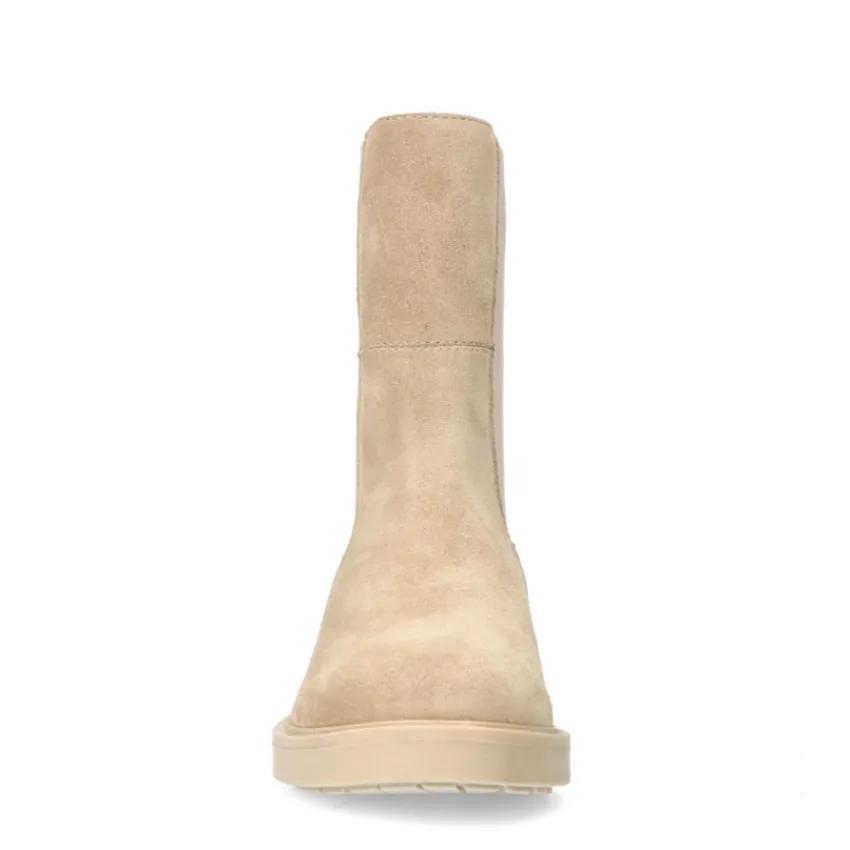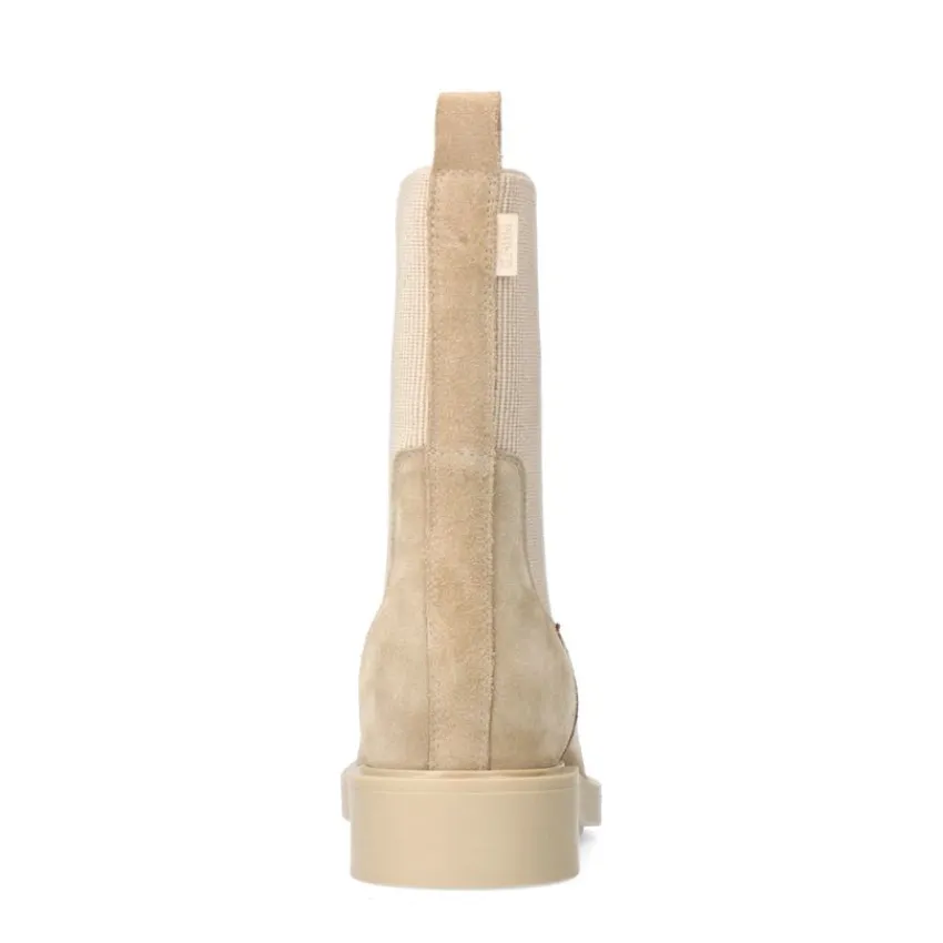 Beige suède chelsea boots van Manfield met platte hak van 3 cm, plateauzool van 2 cm en elastieken sluiting, We adviseren als verzorging en bescherming de suède/nubuck spray in transparant.