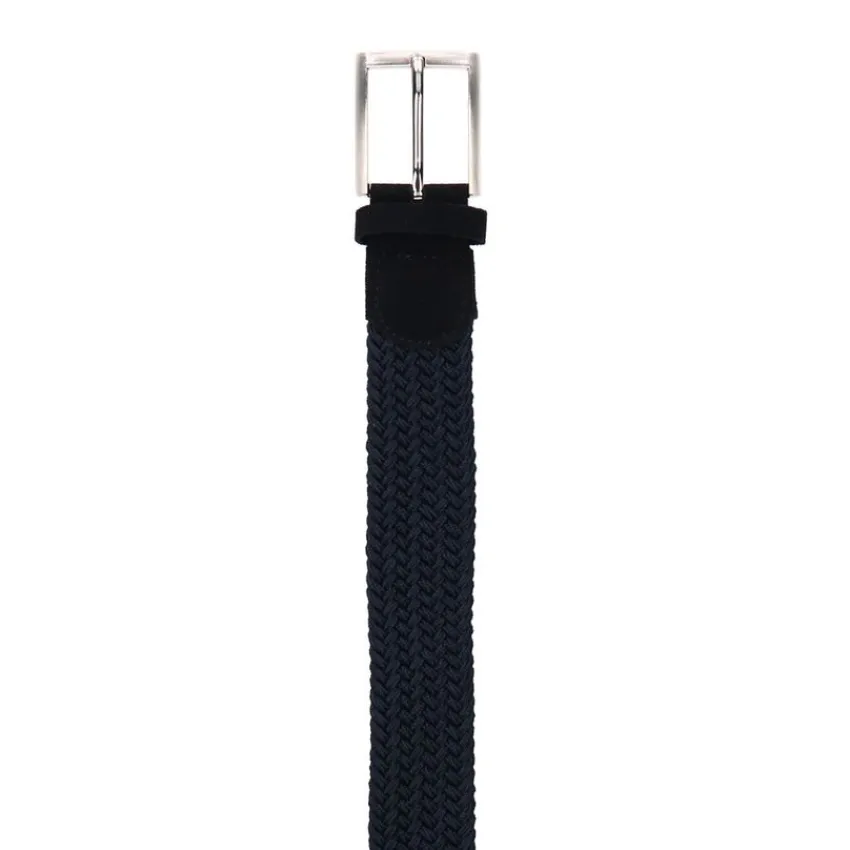 Blauwe synthethische riem van het merk Manfield. De gesp van de riem is zilver. Deze riem is 3,5 cm. breed.