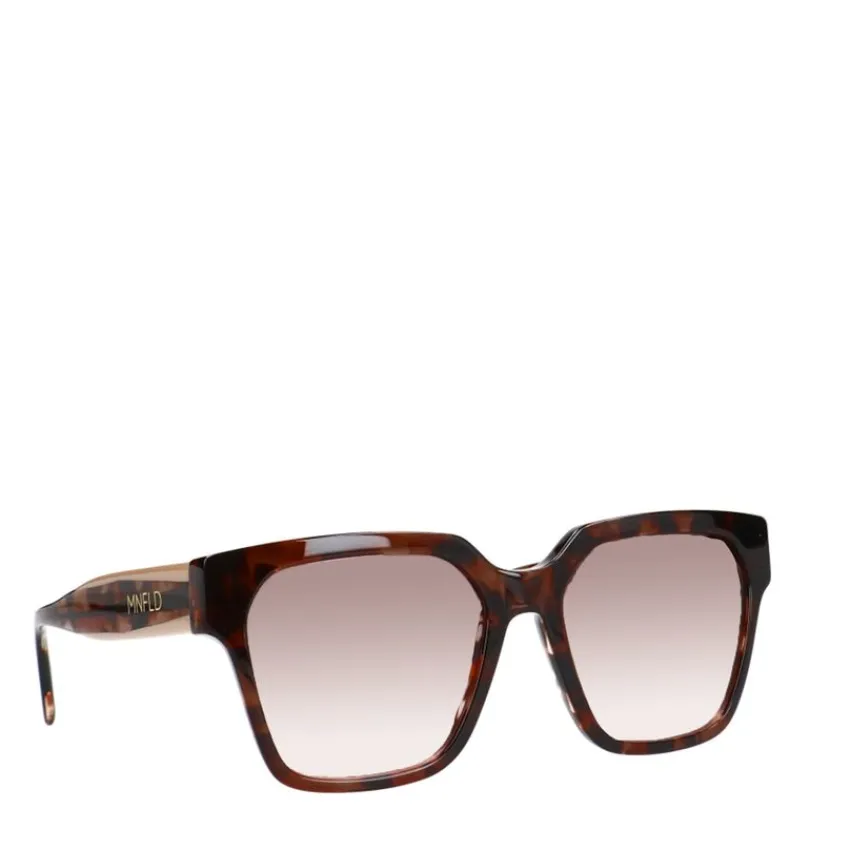 Bruine zonnebril met print van Manfield met een (opvouwbare) brillenkoker inclusief brillendoekje bij de zonnebril geleverd. Zo bescherm je jouw zonnebril tegen krassen!