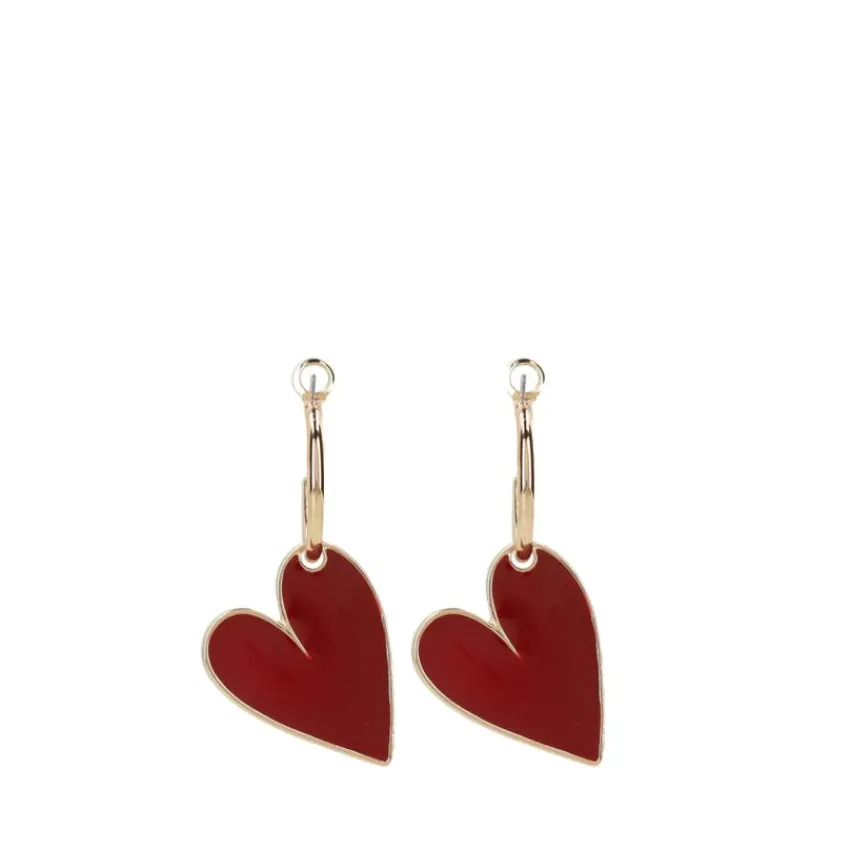Burgundy hartjes oorbellen van Manfield met een lengte van 5 cm en een breedte van 2,5 cm.