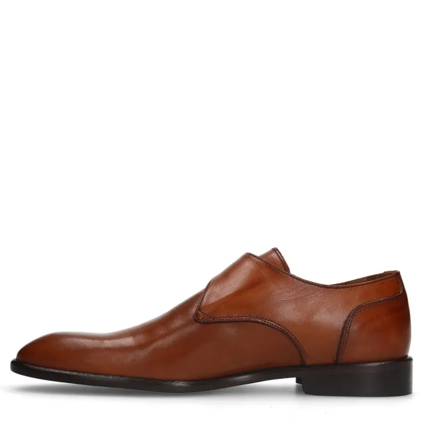 Cognac leren gespschoenen van Manfield. We adviseren als verzorging en bescherming de Collonil Carbon Pro.