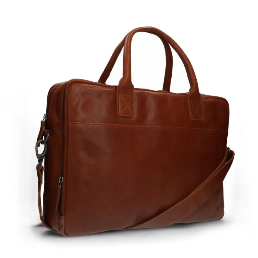Cognac leren laptoptas 17 inch van Manfield. De afmeting van deze tas is 30x43x10 cm (HxBxD), voorzien van twee grote rits vakken en een verstelbare schouderband van minimaal 80 cm en maximaal 150 cm. We adviseren als verzorging en bescherming de Collonil Carbon Pro.