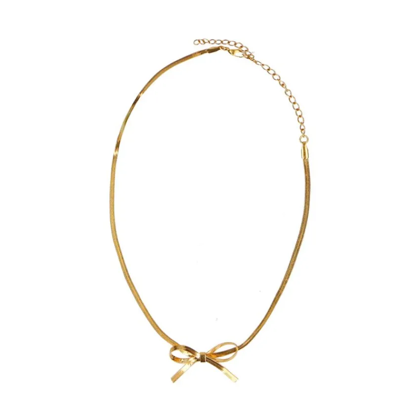 Gouden ketting met strik detail van Manfield. ketting is gemaakt van stainless steel en heeft een totale lengte van 31 cm.