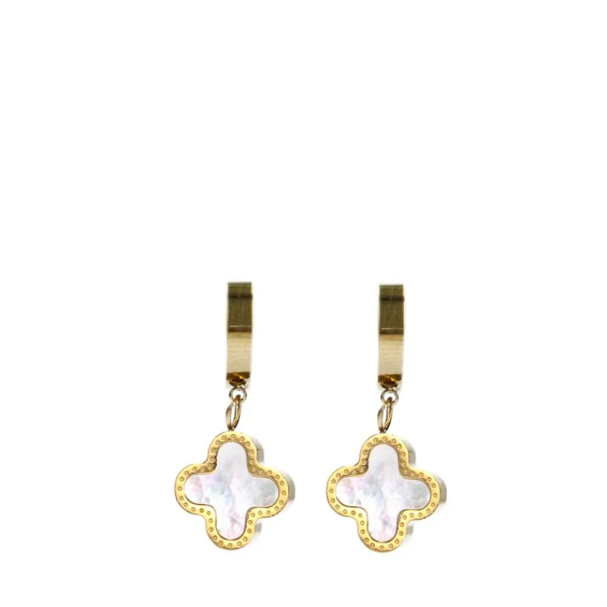 Gouden klavertjes oorbellen van Manfield. De oorbellen zijn gemaakt van stainless steel en hebben een druksluiting.