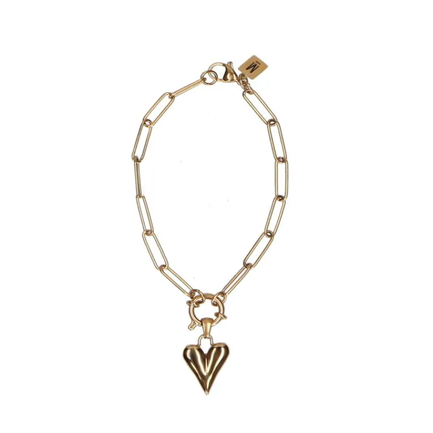 Gouden stainless steel schakelarmband van Manfield met hartjes hanger. Wegens de algemene hygiënevoorschriften kan dit artikel niet geretourneerd worden.