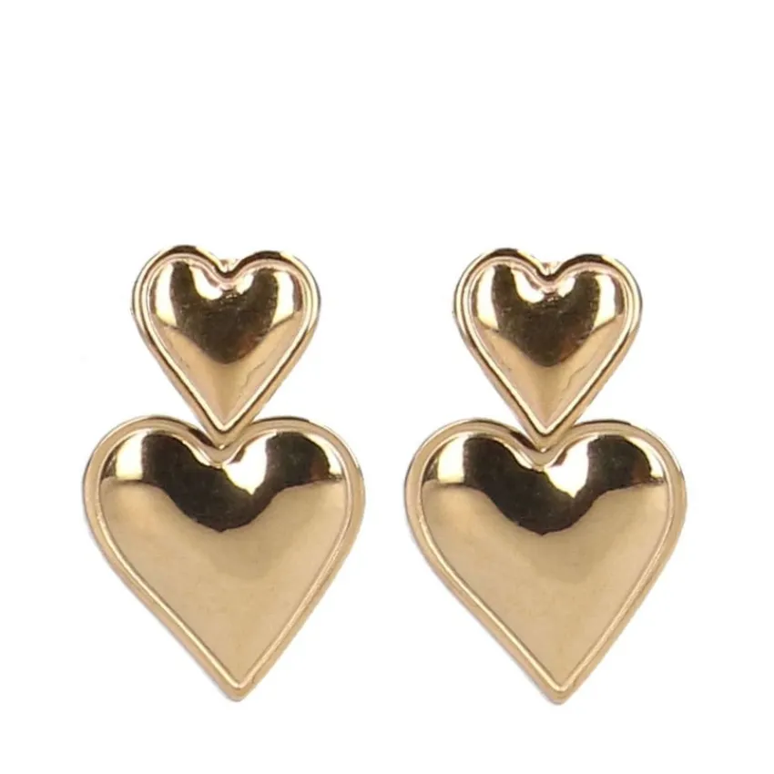 Goudkleurige hartjes oorbellen van Manfield. De oorbellen zijn gemaakt van stainless steel. Deze hartjes oorbellen zijn goudkleurig en hebben een lengte van 3 cm. De breedte bedraagt 1,5 cm.