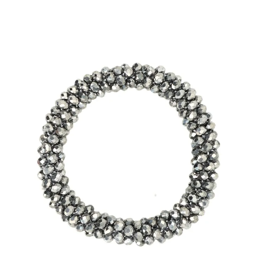 Grijze metallic kralen armband van Manfield. Wegens hygiënevoorschriften kunnen sieraden niet geretourneerd worden.