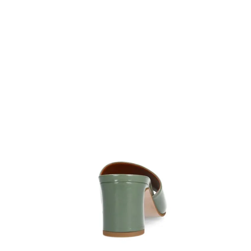 Groene lakleren sandalen met hak van Manfield met blokhak van 6 cm. We adviseren als verzorging en bescherming de Collonil Carbon Pro.