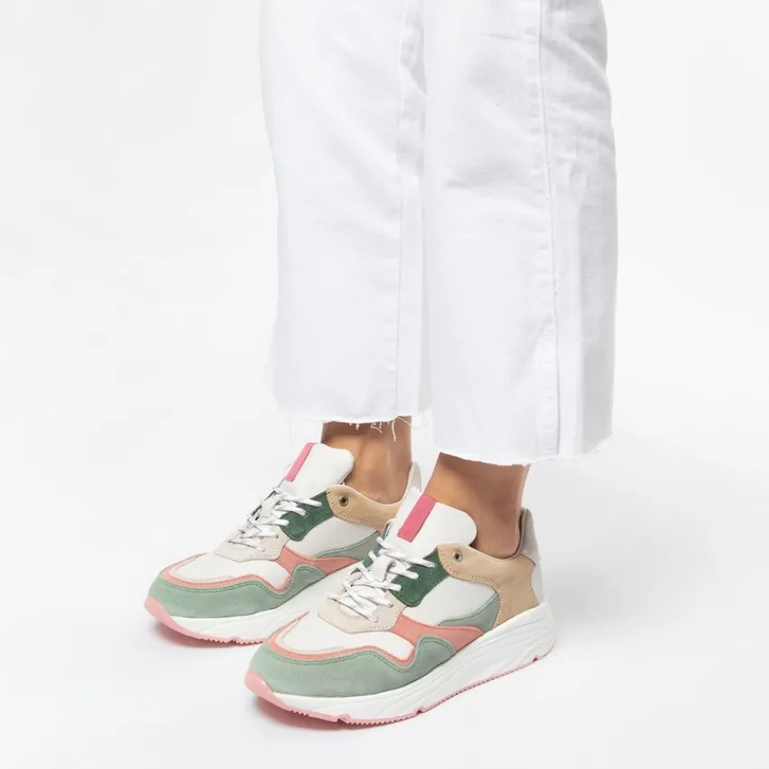 Groene suède sneakers van Manfield met witte zool van 4 cm. We adviseren als verzorging en bescherming de suède/nubuck spray in transparant.