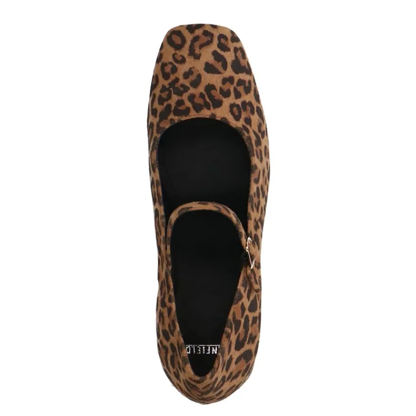 Leopard Mary Jane pumps van Manfield. De pumps hebben een hak van 6 cm, vierkante neus en gespsluiting die over de voorvoet loopt. We adviseren als verzorging en bescherming de Natural Trendspray.