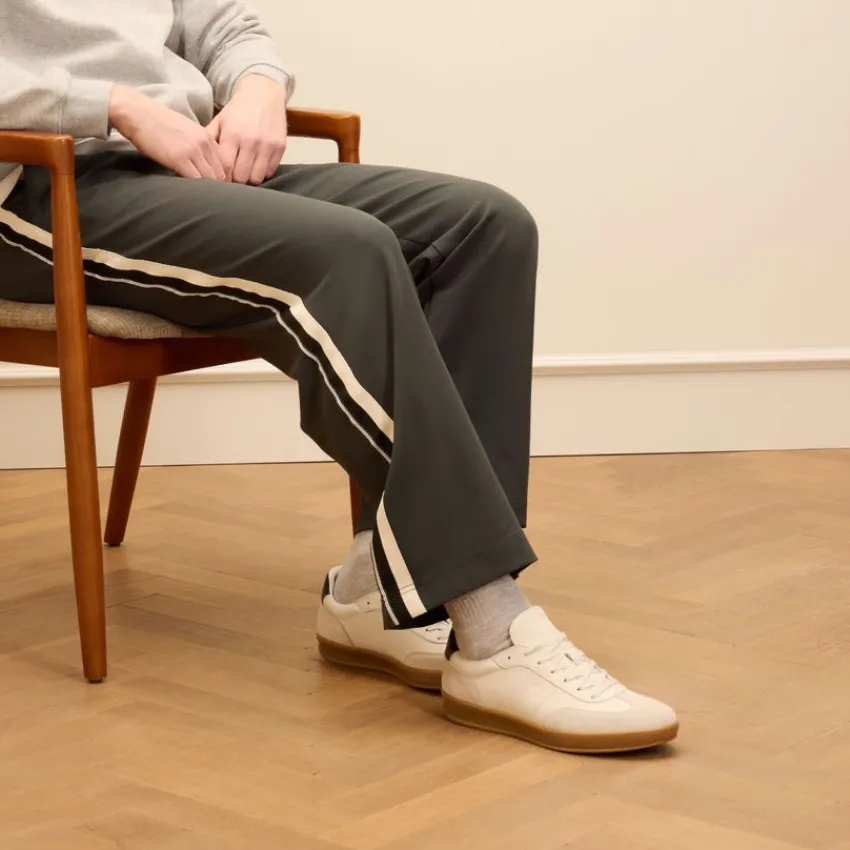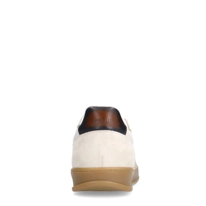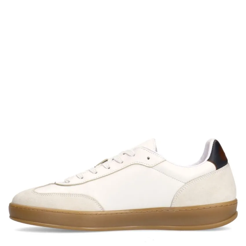 Off white leren sneakers met suède details van Manfield met beige zool. We adviseren als verzorging en bescherming de Collonil Carbon Pro.