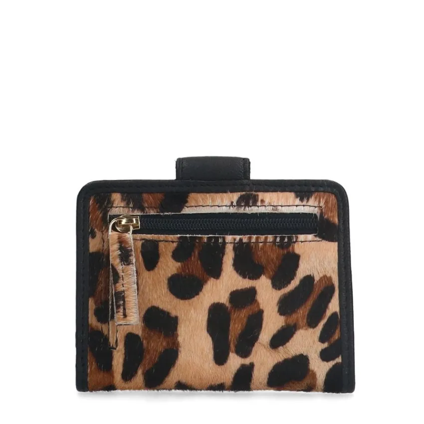 Panter portemonnee van Manfield met drukknoopsluiting en aparte vakken voor pasjes. De afmeting van de portemonnee is 8×11 cm (BxH).
