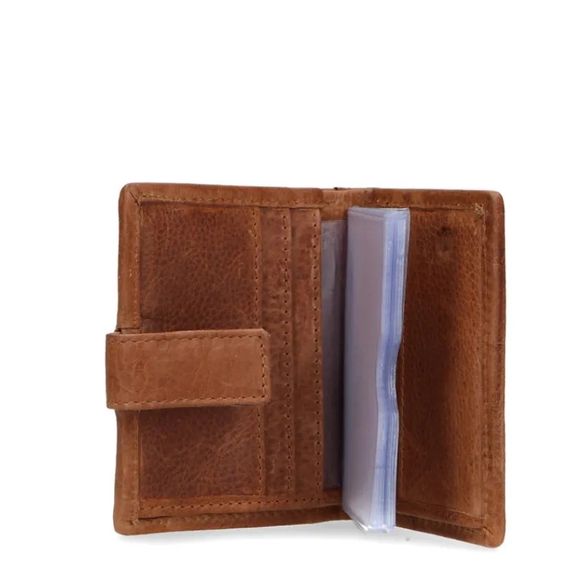 Portemonnee met leopard print van Manfield met drukknoop sluiting en ruimte voor 25 pasjes. De afmetingen zijn 11x9x2 cm (BxHxD).