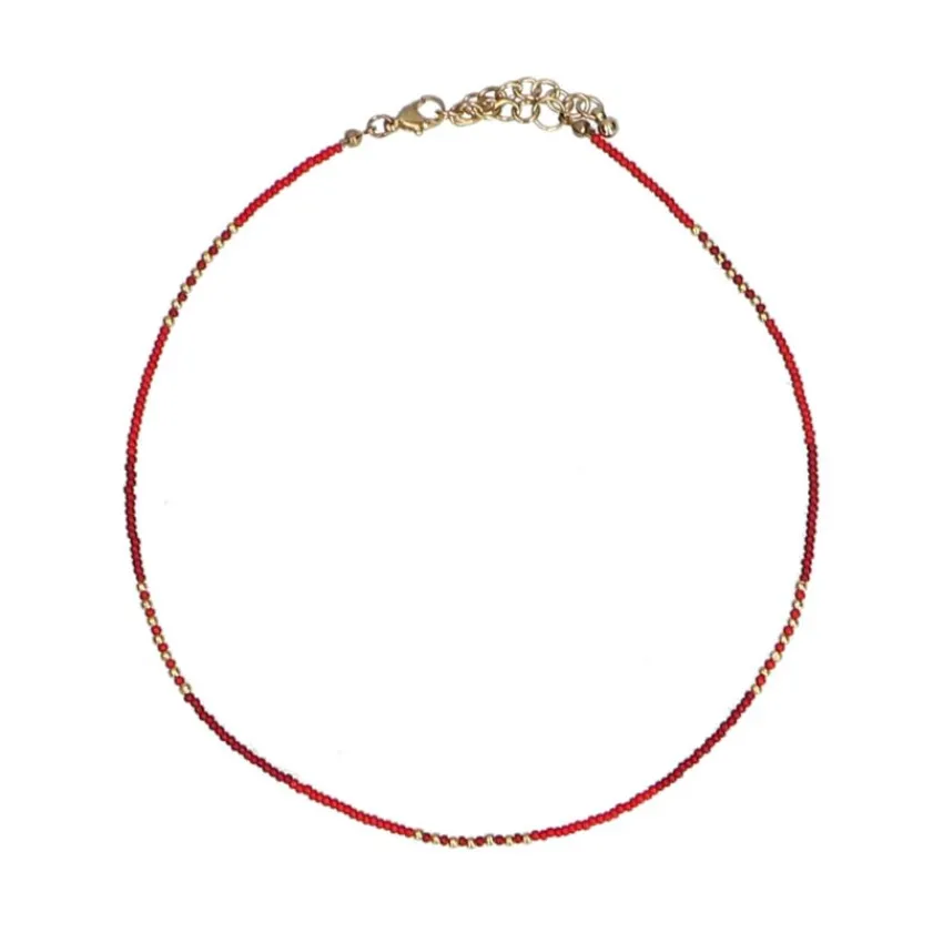 Rode kralenketting van Manfield met totale lengte van 45 cm. Wegens de algemene hygiënevoorschriften kan dit artikel niet geretourneerd worden.