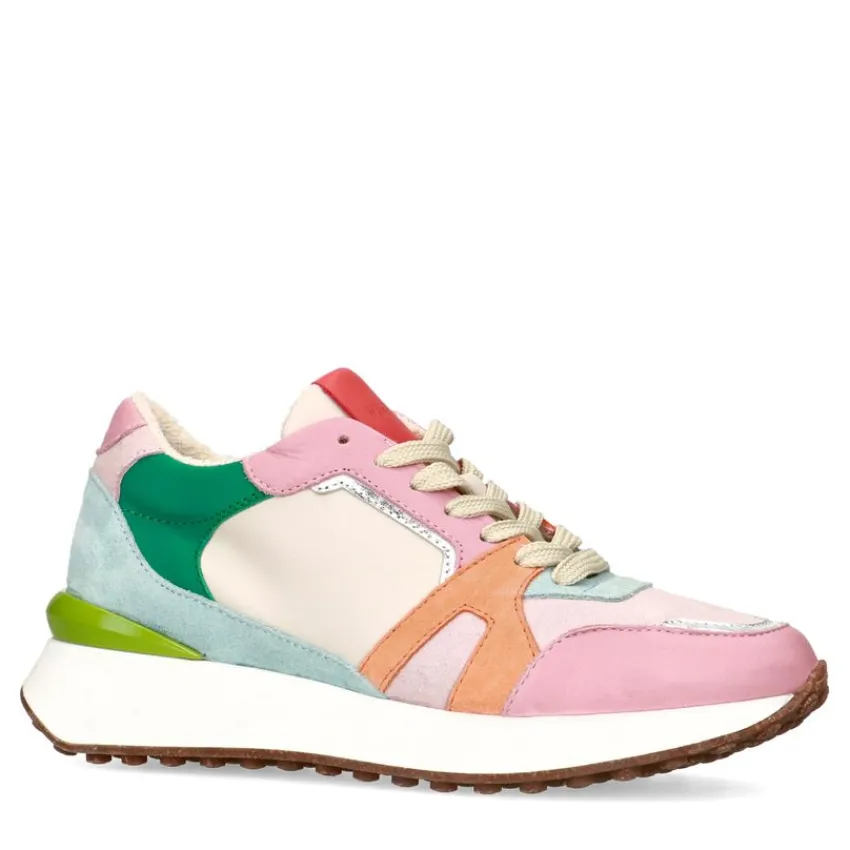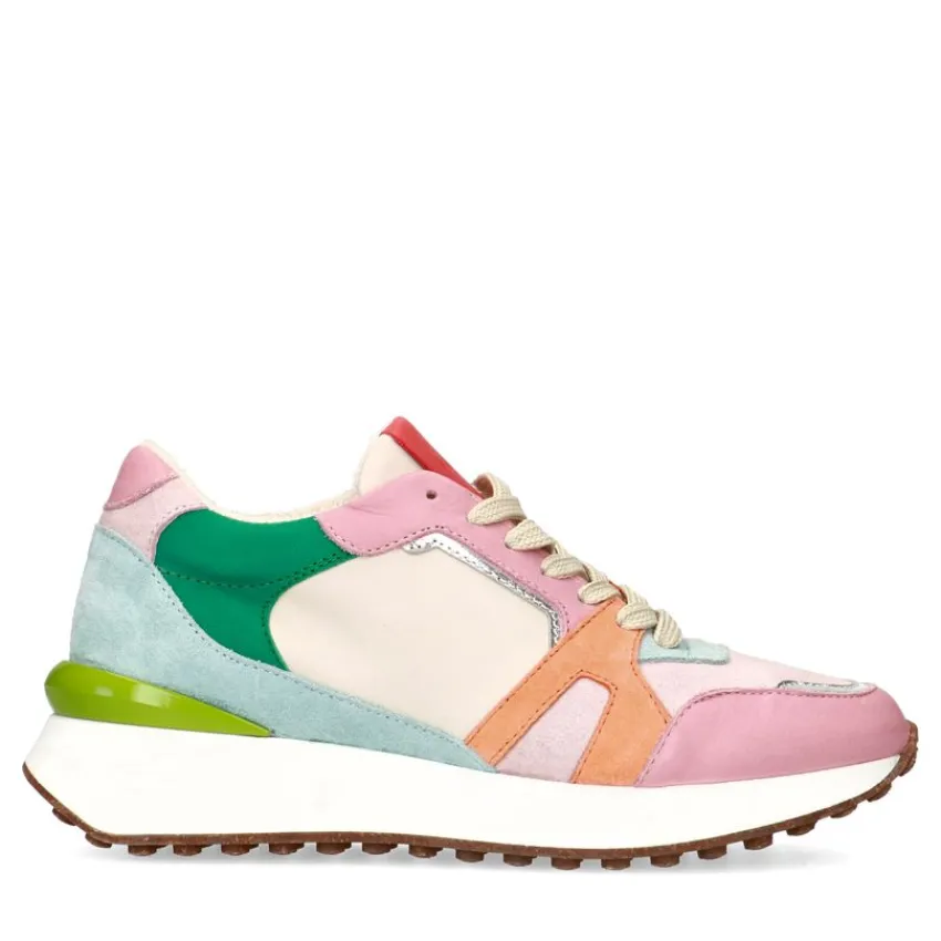 Roze leren sneakers van Manfield met witte zool. We adviseren als verzorging en bescherming de Collonil Carbon Pro.