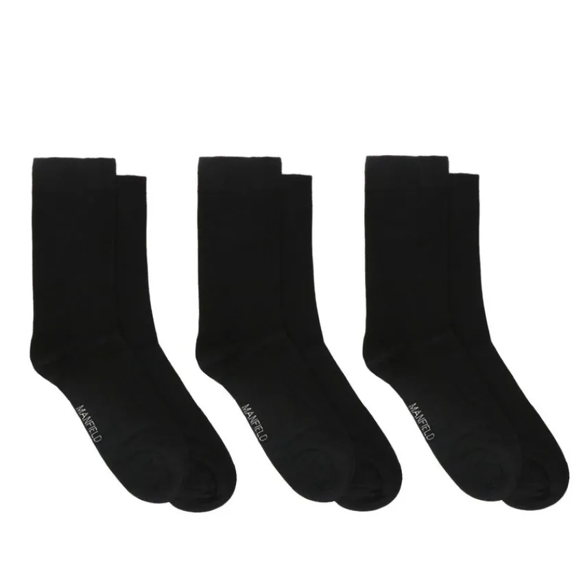 Set van 3 zwarte bamboe sokken van Manfield. Deze sokken zijn gemaakt van bamboe katoen, waardoor ze extra fijn ademen. Een fijne basic om in de kast te hebben. Materiaal: 70% viscose, 22% polyester, 6% polyamide en 2% elastaan.