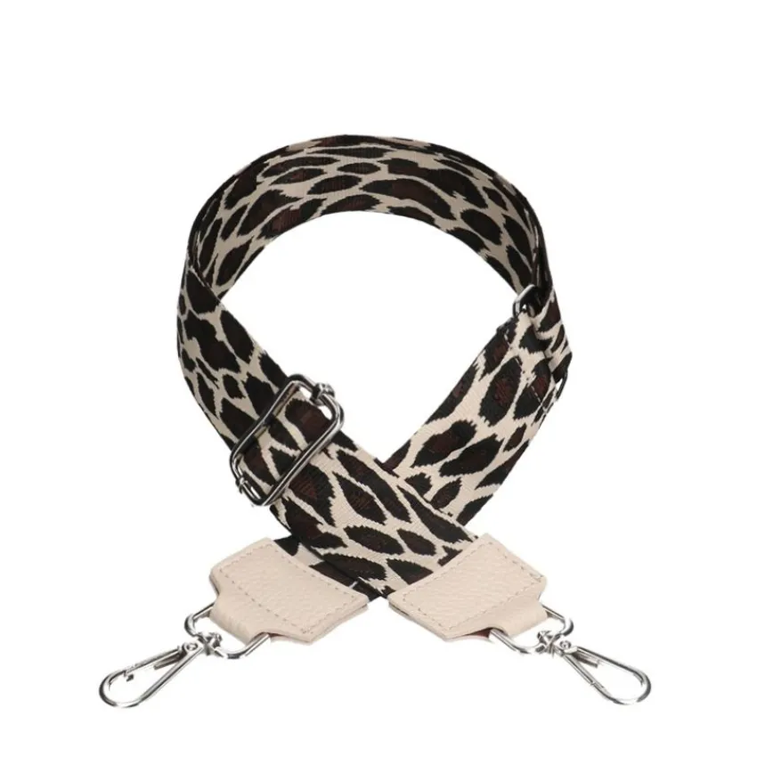 Verstelbare bag strap met leopard print van Manfield. Dit tassenhengsel heeft zilverkleurige details, een maximale lengt…