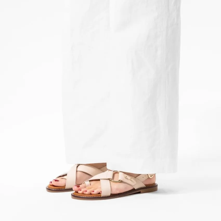 Witte leren sandalen van Manfield met gespsluiting rondom de enkels. We adviseren als verzorging en bescherming de Collonil Carbon Pro.