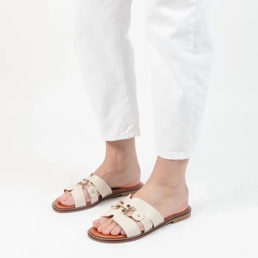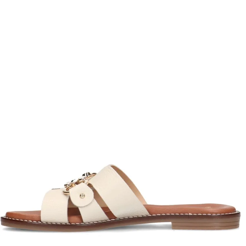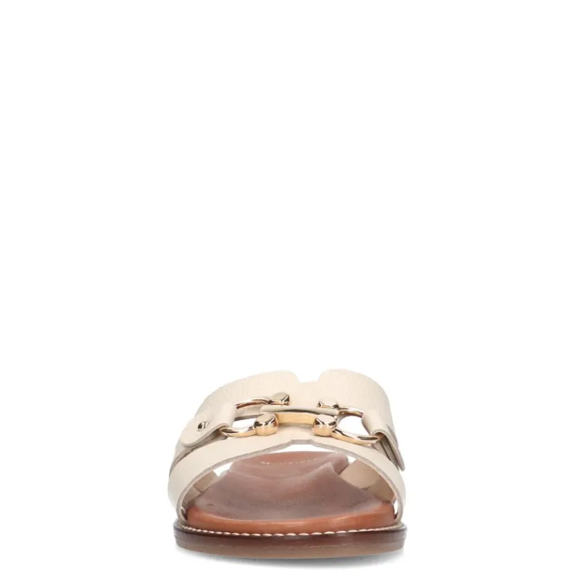 Manfield Witte leren slippers met goudkleurig bitje^DAMES Slippers