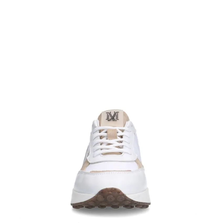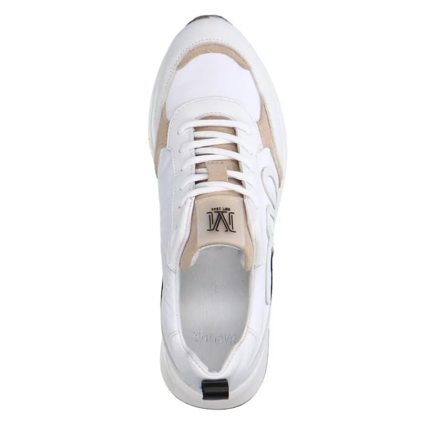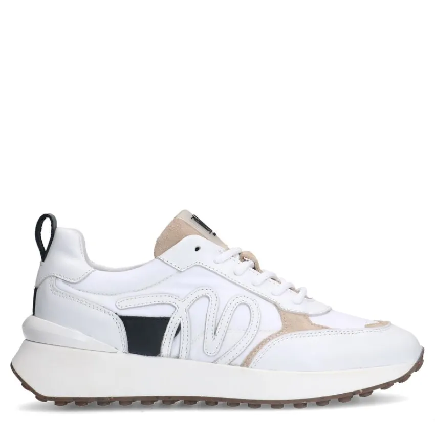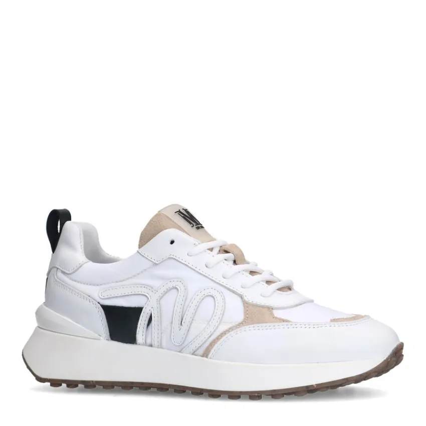 Witte leren sneakers met details van Manfield en een witte zool van 3 cm. We adviseren als verzorging en bescherming de Collonil Carbon Pro.