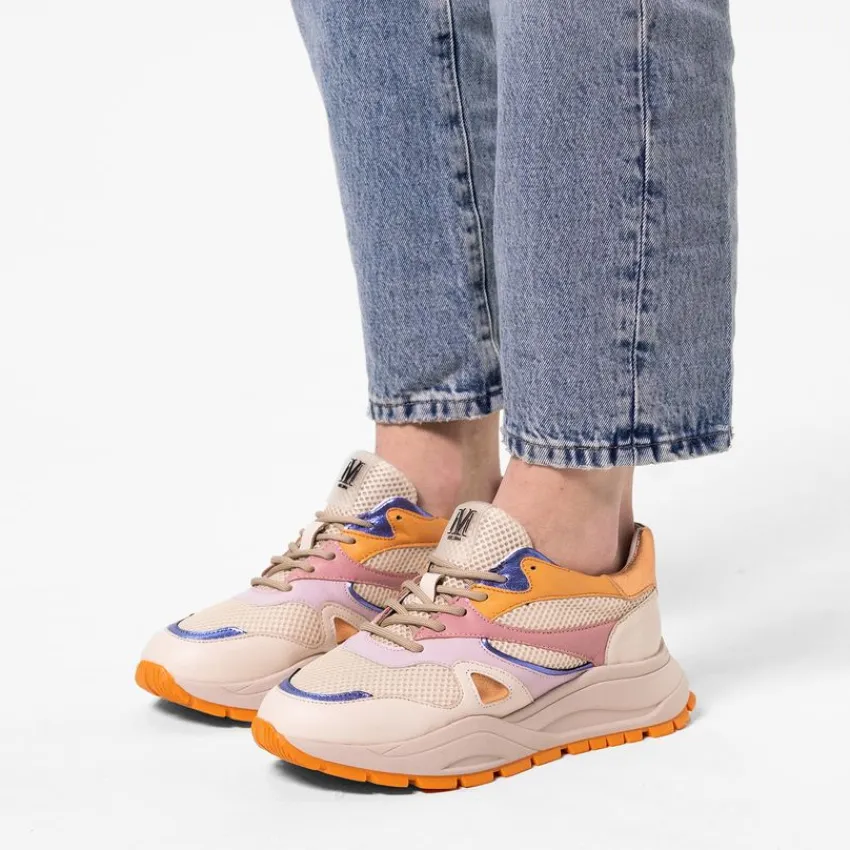 Witte leren sneakers met gekleurde details van Manfield met een zool van 4 cm. We adviseren als verzorging en bescherming de Collonil Carbon Pro.
