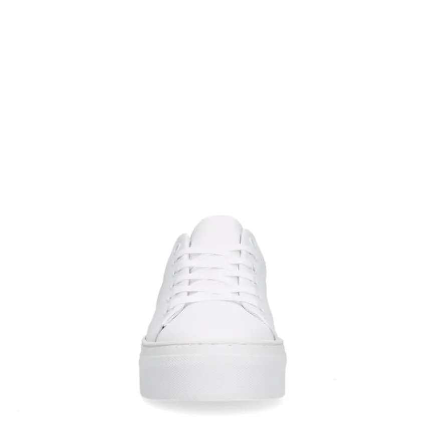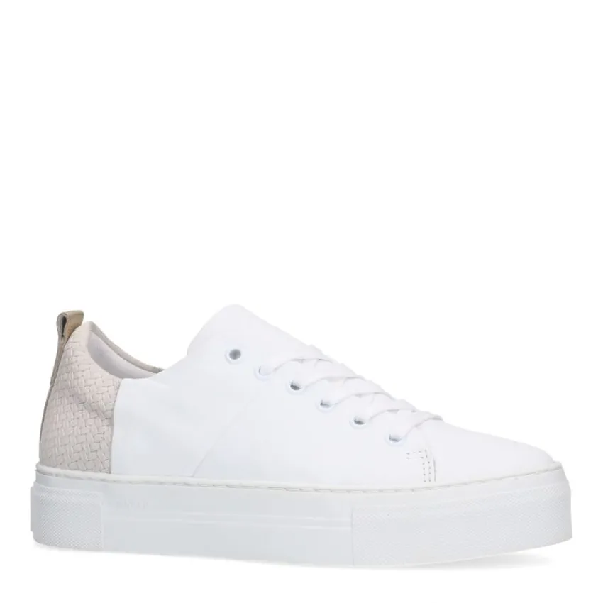 Witte leren sneakers met grijze achterkant van Manfield. We adviseren als verzorging en bescherming de Collonil Carbon Pro.