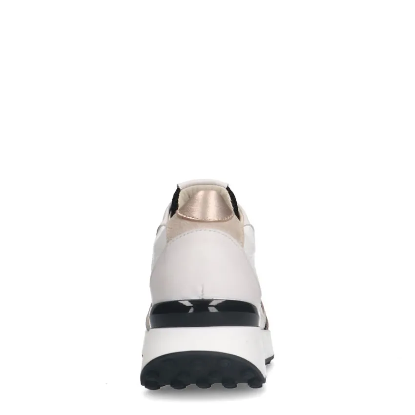 Witte leren sneakers met mesh details van Manfield. De sneakers hebben een witte zool van 3 cm en een uitneembare binnenzool. We adviseren als verzorging en bescherming de Collonil Carbon Pro.