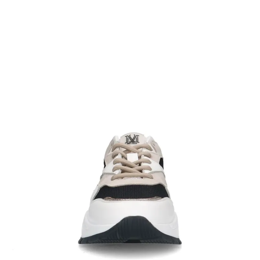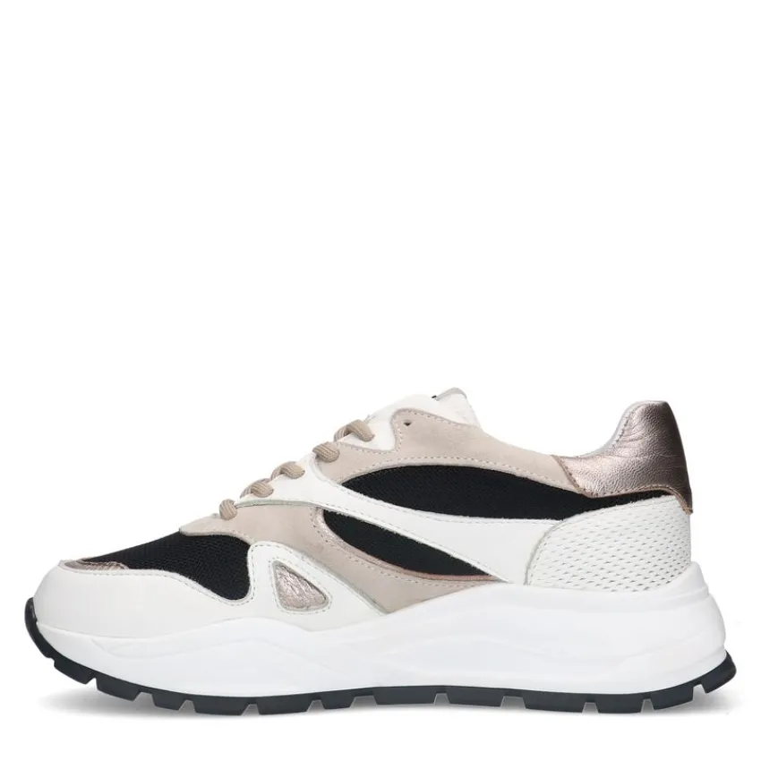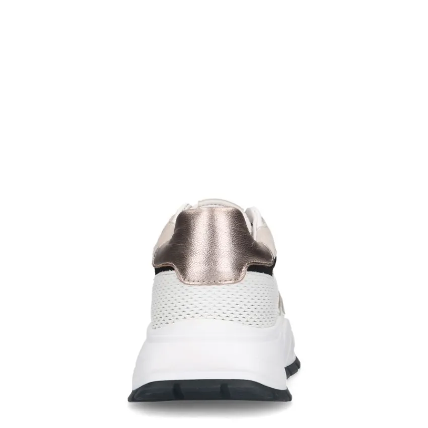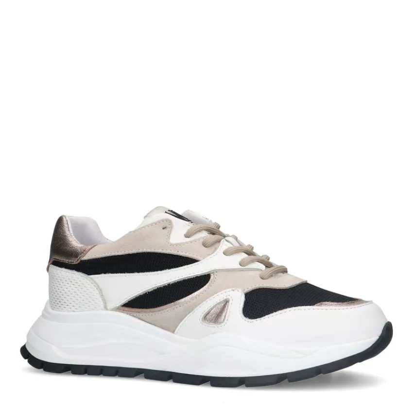Witte leren sneakers met mesh details van Manfield. De schoenen hebben een witte zool van 4 cm. We adviseren als verzorging en bescherming de Collonil Carbon Pro of de Natural Trendspray