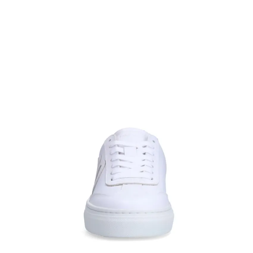Witte leren sneakers van Manfield. De sneakers hebben een witte zool. We adviseren als verzorging en bescherming de Collonil Carbon Pro. LET OP- Dit artikel is een oline only item, toch willen passen of deze goed zit? In de winkel hebben wij vergelijkbare modellen.