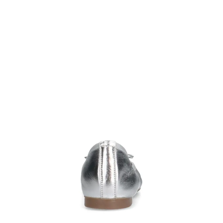 Zilverkleurige leren ballerina’s van Manfield met platte zool. We adviseren als verzorging en bescherming de Collonil Carbon Pro.