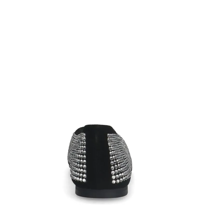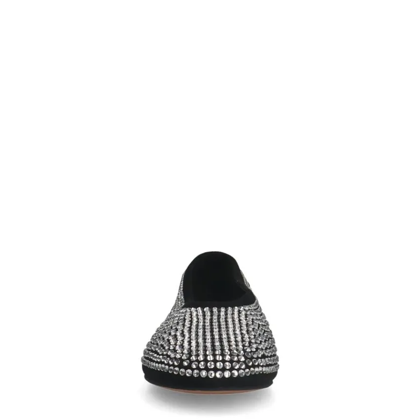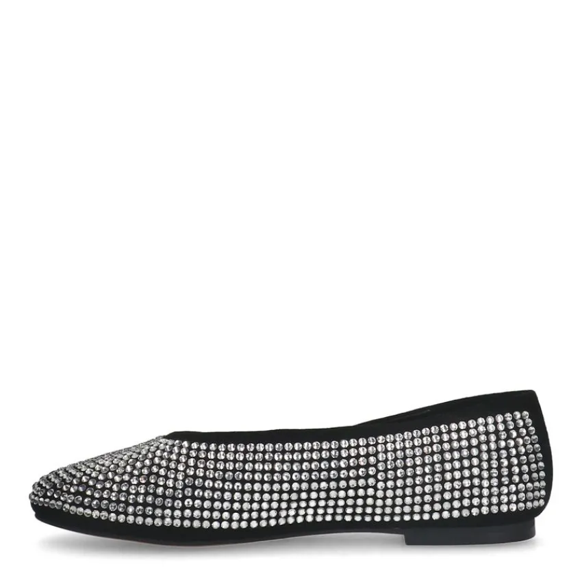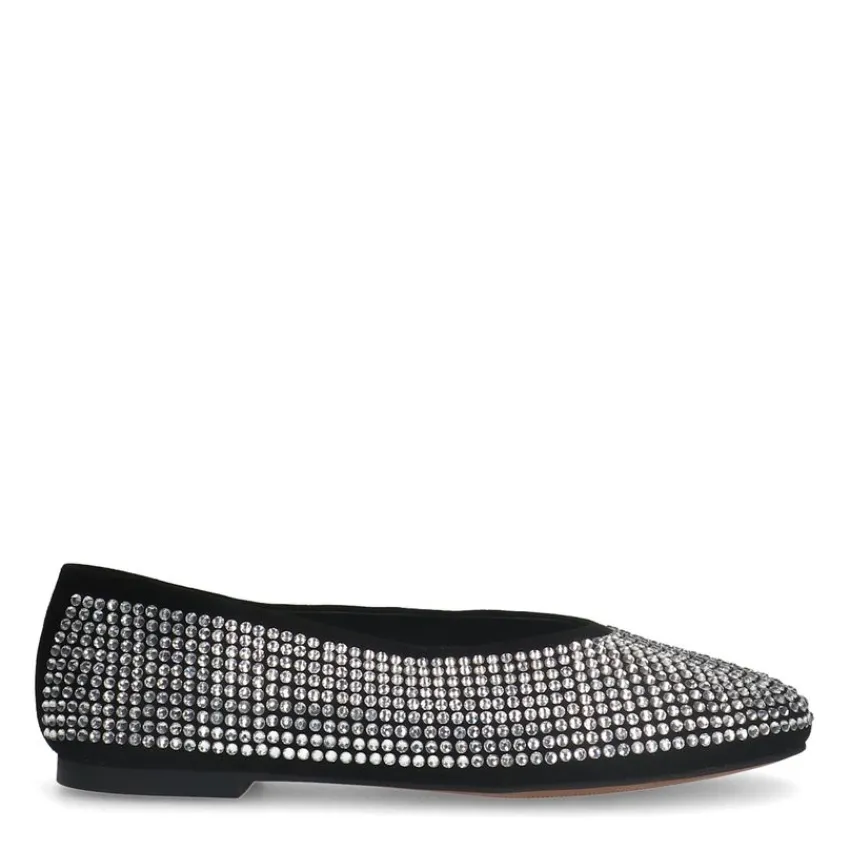 Zwarte leren ballerina’s met diamanten van Manfield. We adviseren als verzorging en bescherming de Collonil Carbon Pro of de Natural Trendspray.
