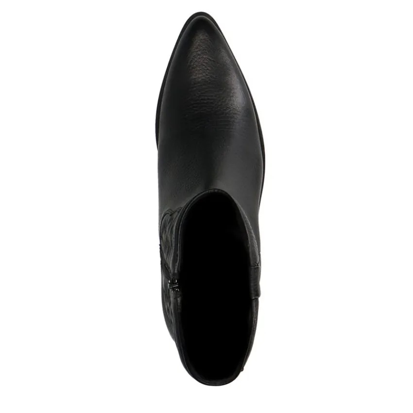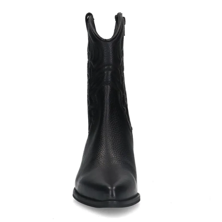 Zwarte leren cowboy laarzen van Manfield met blokhak van 4 cm en een puntige neus. We adviseren als verzorging en bescherming de Collonil Carbon Pro.
