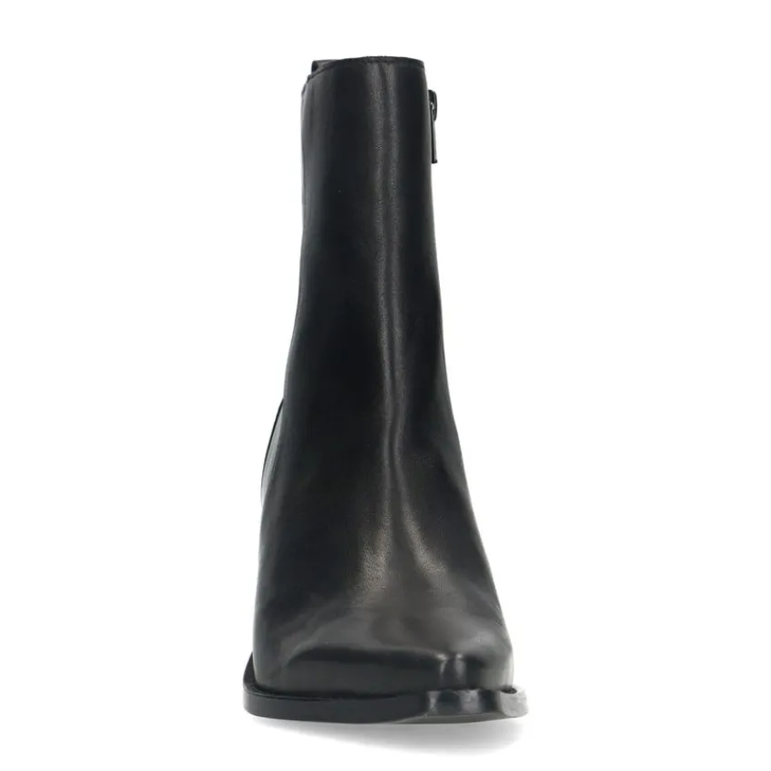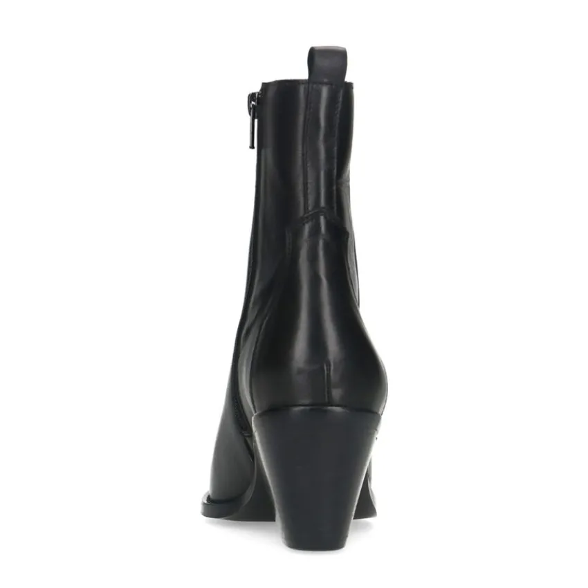 Zwarte leren cowboylaarzen van Manfield met blokhak van 4 cm en puntige neus. We adviseren als verzorging en bescherming de Collonil Carbon Pro.