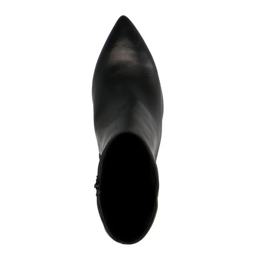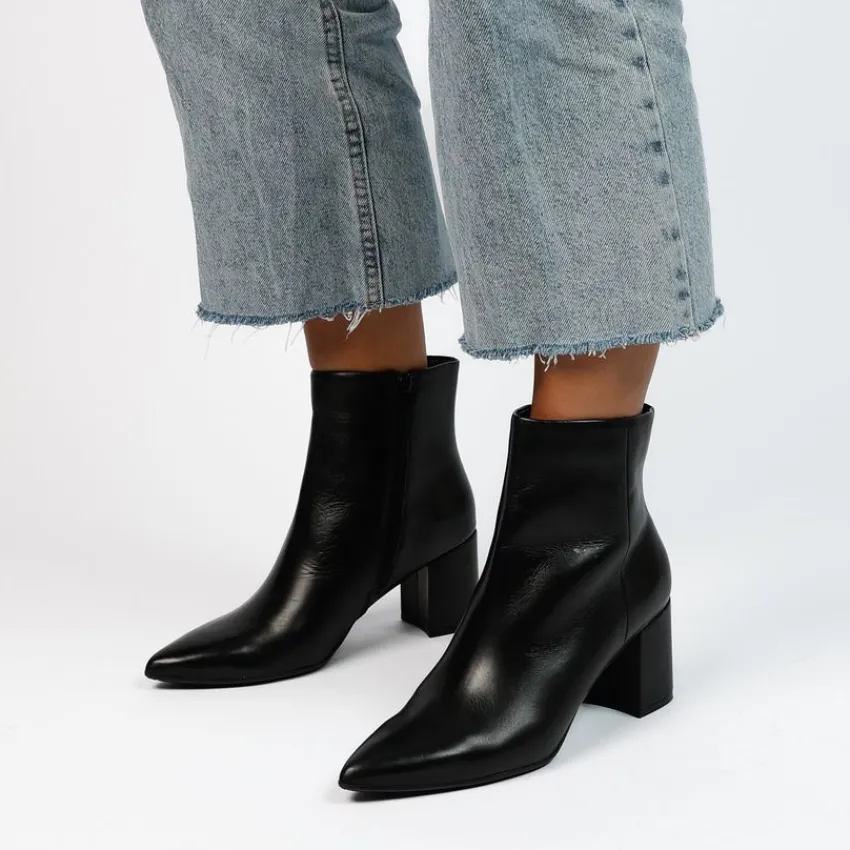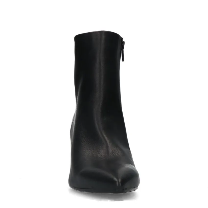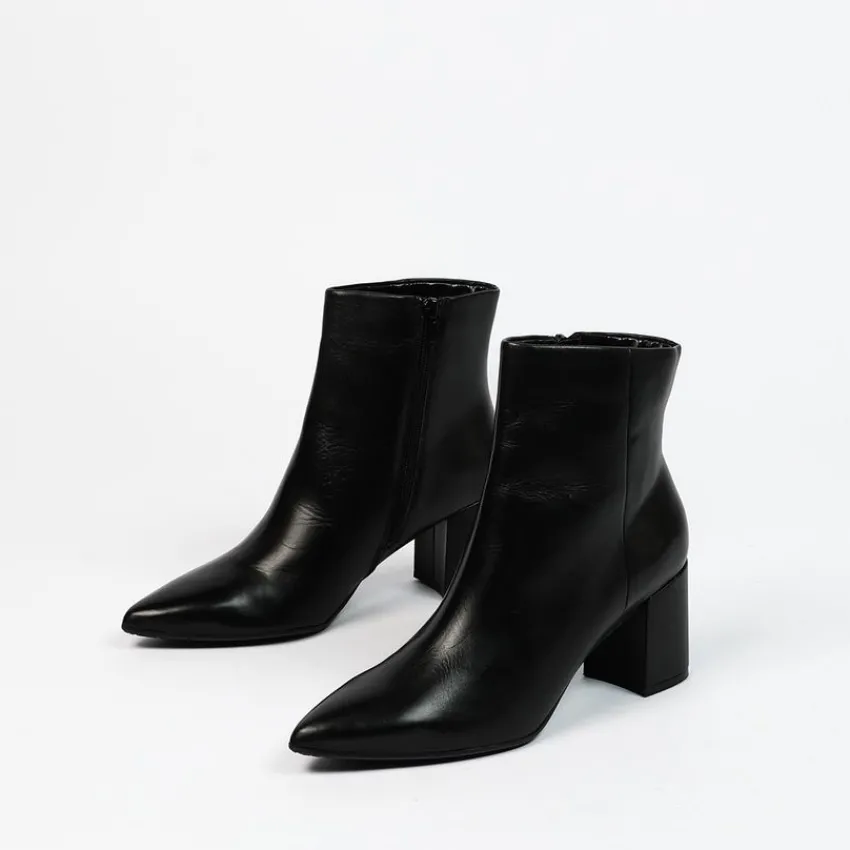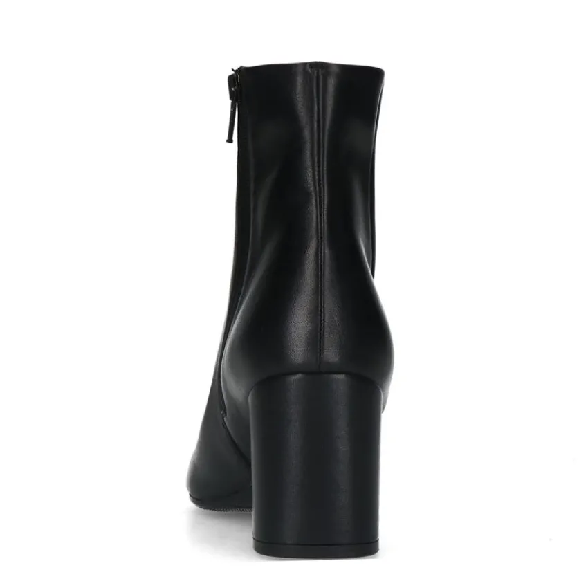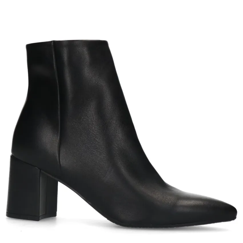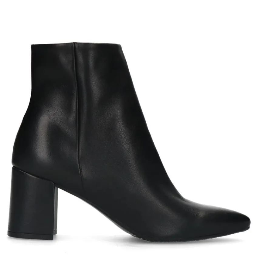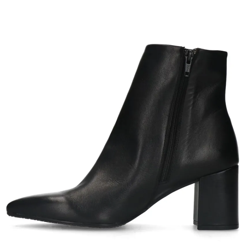 Zwarte leren enkellaarsjes met hak van Manfield. Deze enkellaarsjes zijn gemaakt van leer en daarom raden we je aan deze enkellaarsjes te verzorgen en beschermen met de Collonil Carbon Pro. Deze enkellaarsjes zijn voorzien van een subtiele blokhak met hoogte van 7 cm. Deze dames laarzen kunnen gesloten worden door middel van een ritssluiting en de puntvormige neus zorgt voor een stijlvolle uitstraling.