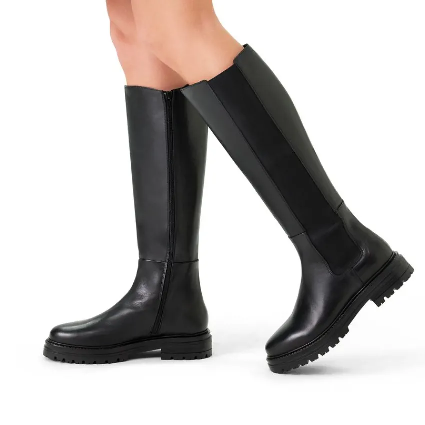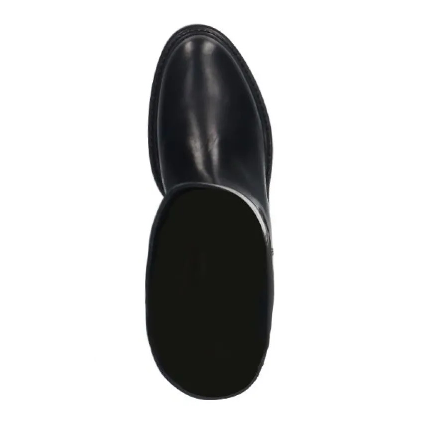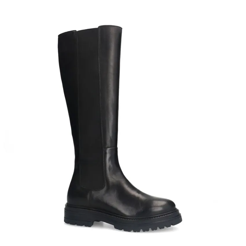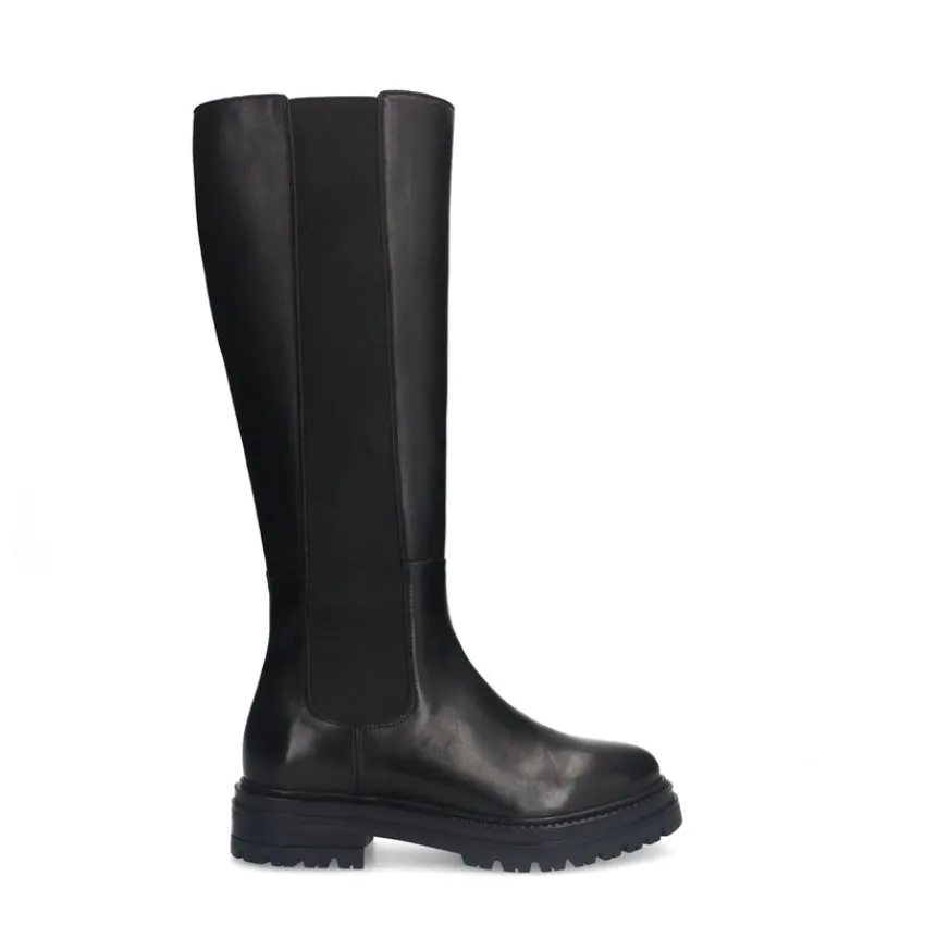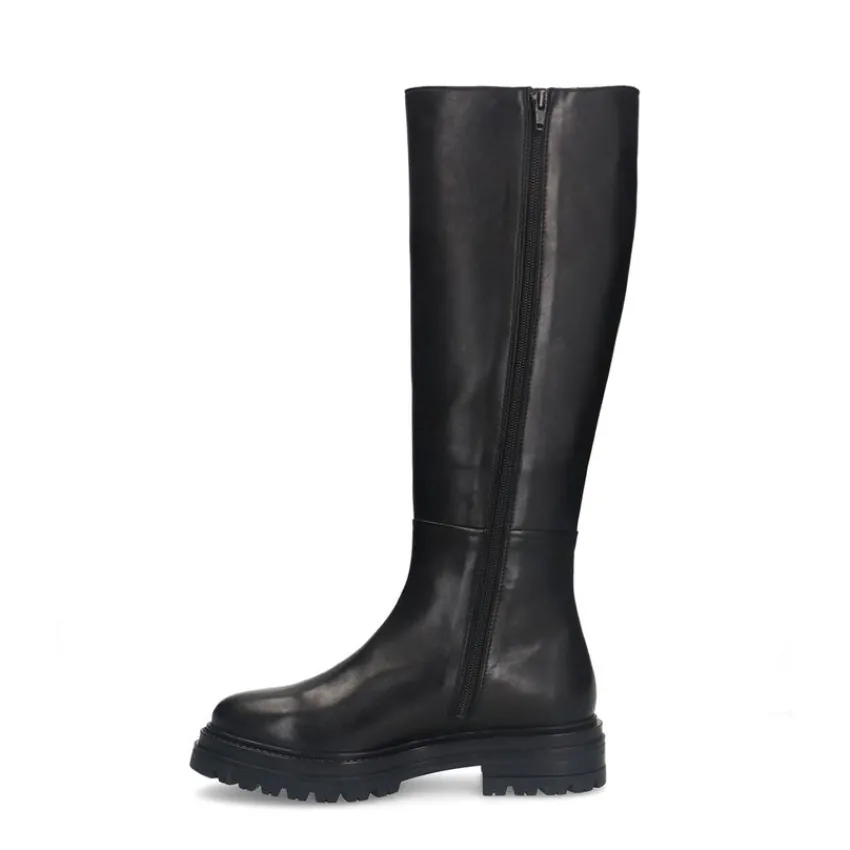 Zwarte leren hoge laarzen van Manfield met ritssluiting aan de binnenzijde. De laarzen hebben een schachthoogte van 40 cm en een schachtomtrek van 38 cm, gemeten bij een maat 37. We adviseren als verzorging en bescherming de Collonil Carbon Pro.