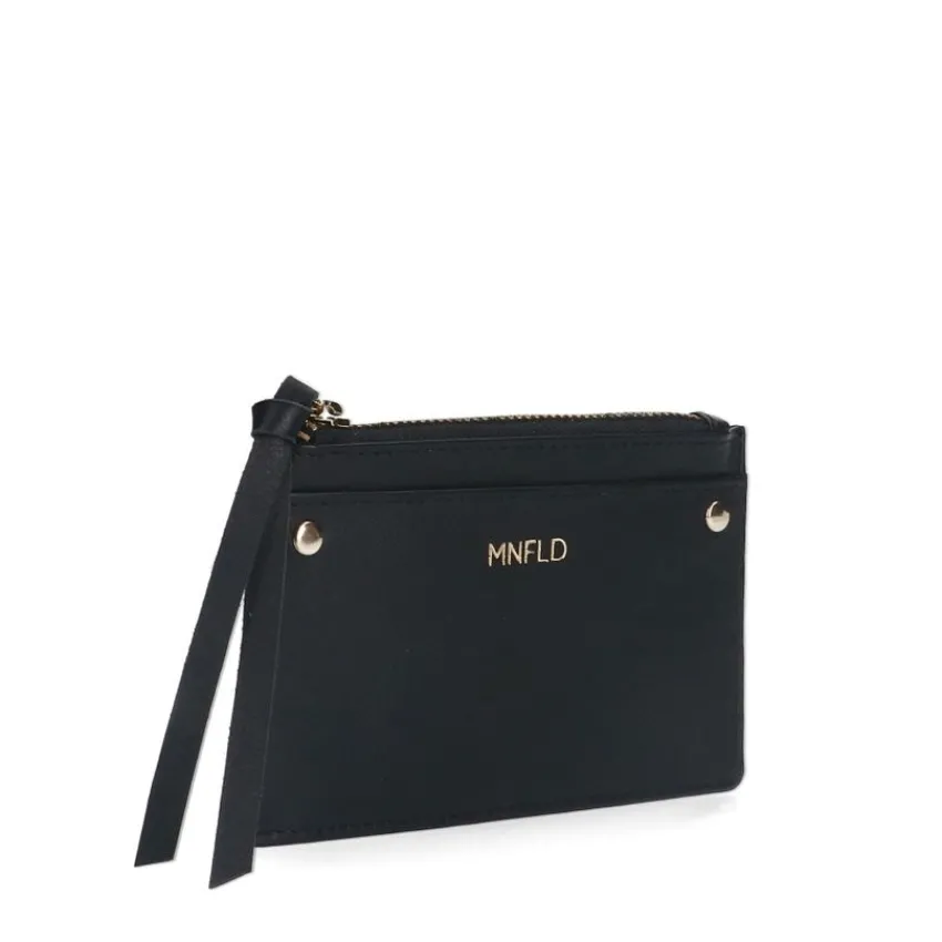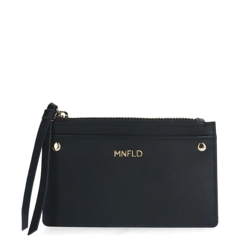 Zwarte leren portemonnee van Manfield met ritssluiting en verschillende vakjes voor pasjes. We afmeting van deze portemonnee is 13,5 x 8 cm (BxH).
