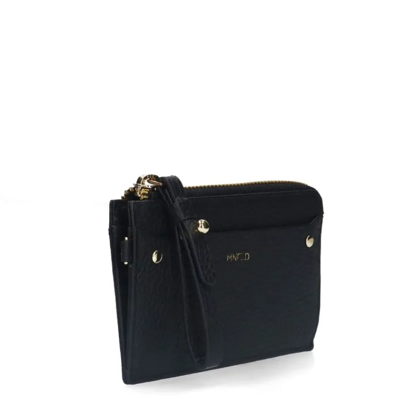 Zwarte leren portemonnee van Manfield met ritssluiting en vakjes voor passen. De afmeting van de portemonnee 13,5×8 cm (…