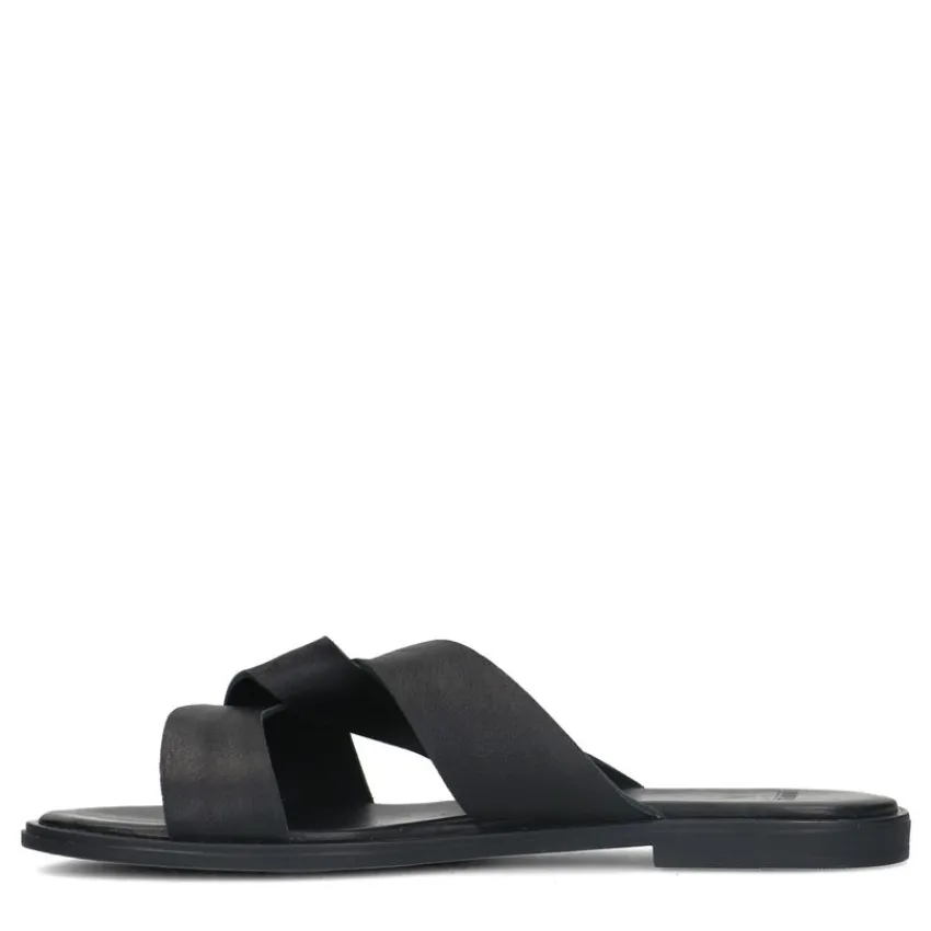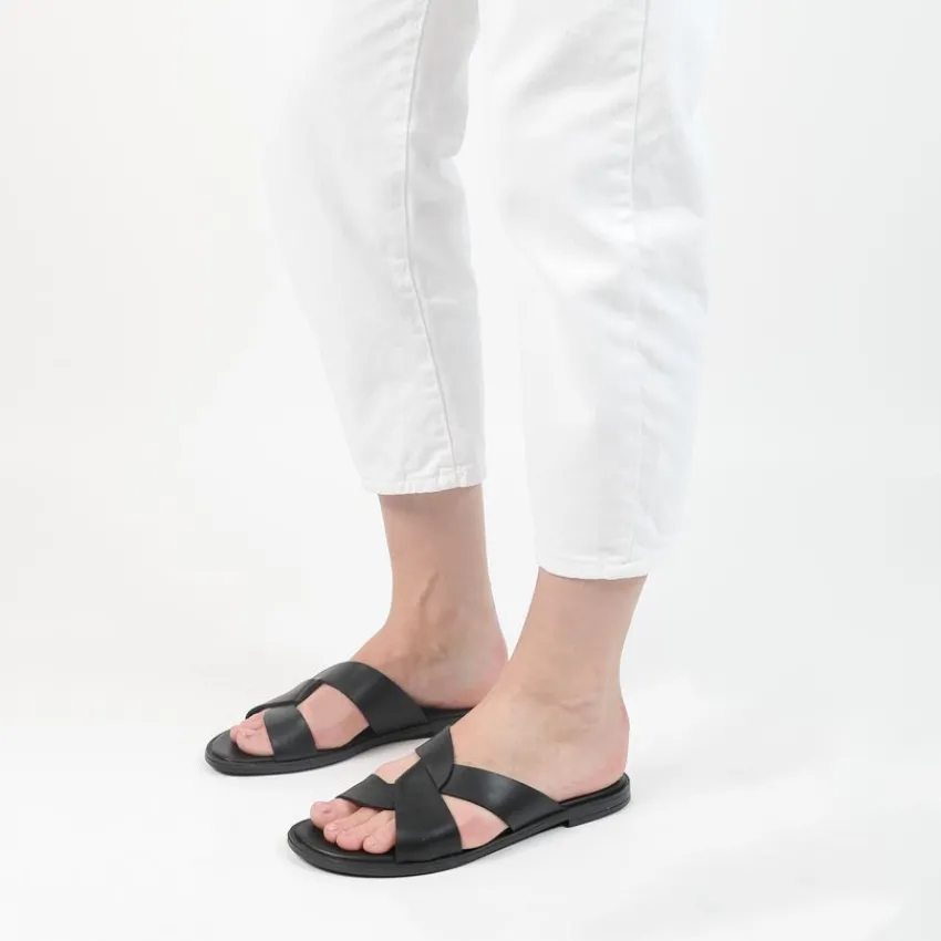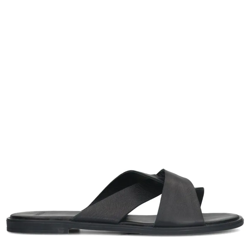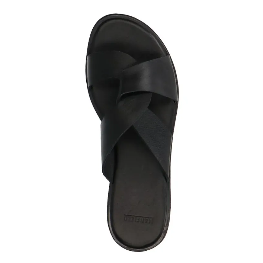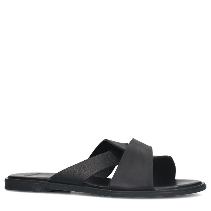 Zwarte leren slippers van Manfield. We adviseren als verzorging en bescherming de Collonil Carbon Pro.