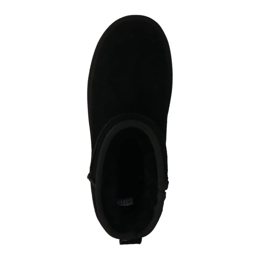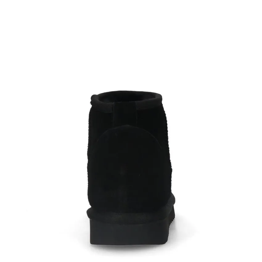 Zwarte suède boots van Manfield met wol aan de binnenkant en zool van 2 cm. We adviseren als verzorging en bescherming de suède/nubuck spray in transparant.