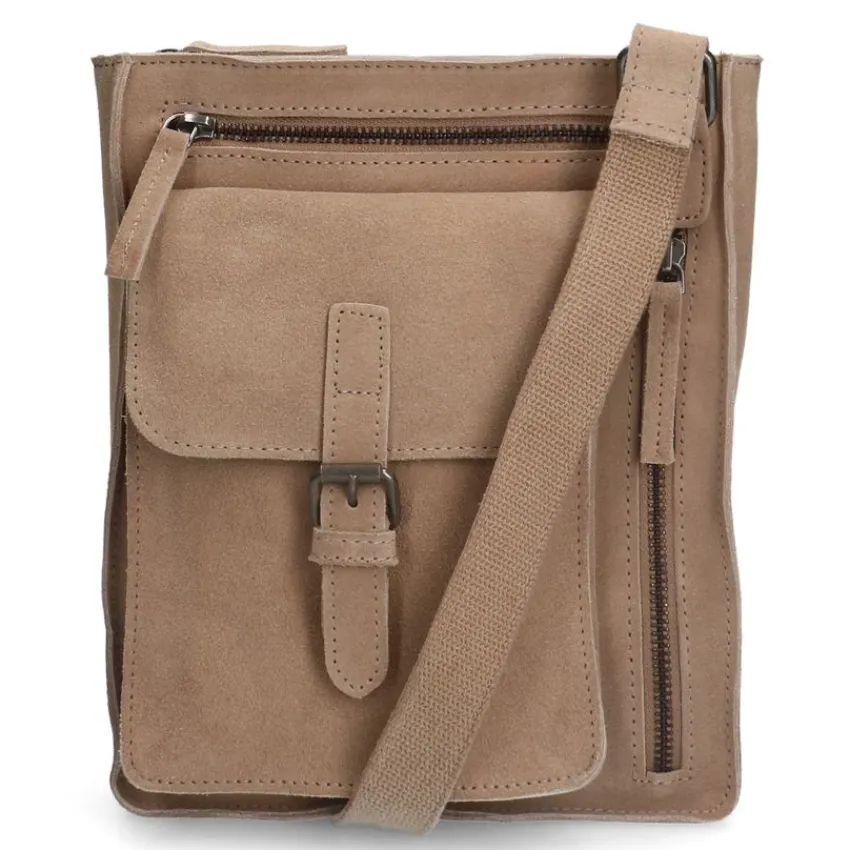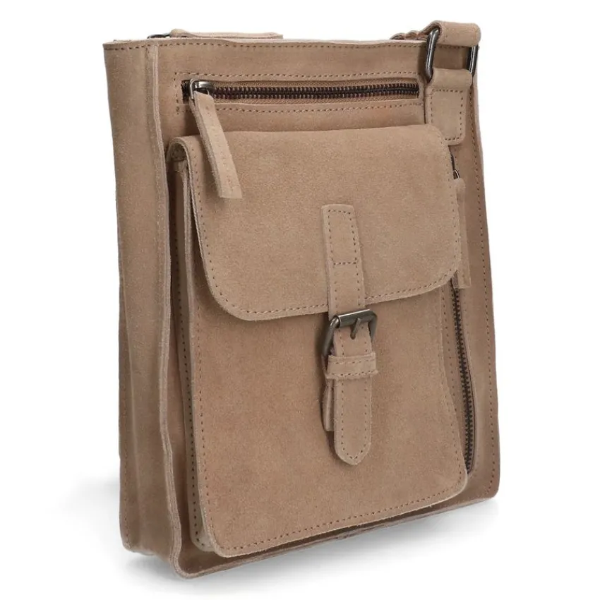 Beige suède schoudertas van het merk No Stress. De afmeting van deze tas is 20x24x5 cm (BxHxD), voorzien van meerdere aparte vakken die sluiten door middel van een ritssluiting. Ook zit er een verstelbare band bij van 135 cm. We adviseren als verzorging en bescherming de suède/nubuck spray in transparant.