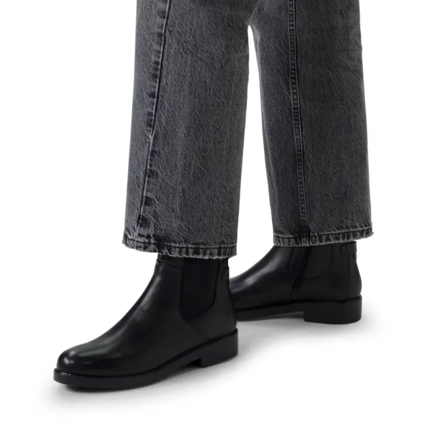 Zwarte leren chelsea boots van het merk No Stress. De boots hebben een memory foam voetbed en elastiek sluiting. We adviseren als verzorging en bescherming de Collonil Carbon Pro.