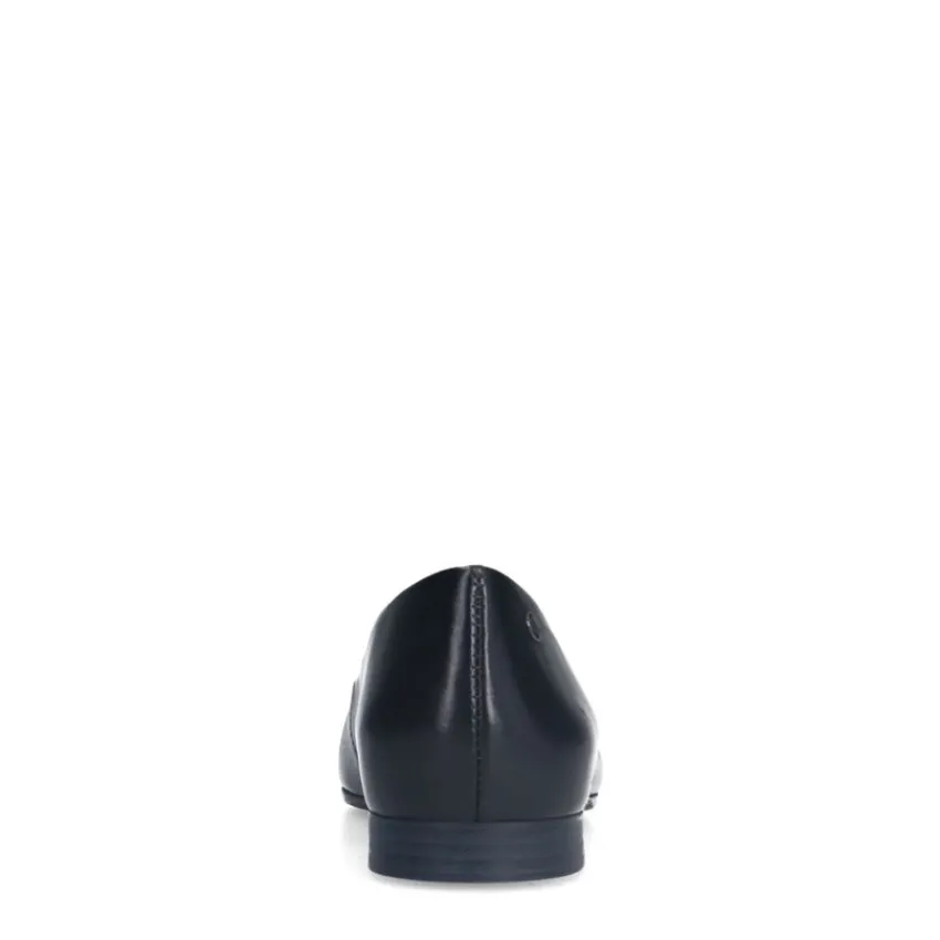 Zwarte leren loafers van No Stress met een memory foam voetbed, puntige neus en platte hak van 1 cm. We adviseren als verzorging en bescherming de Colonil Carbon Pro.