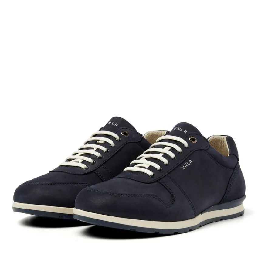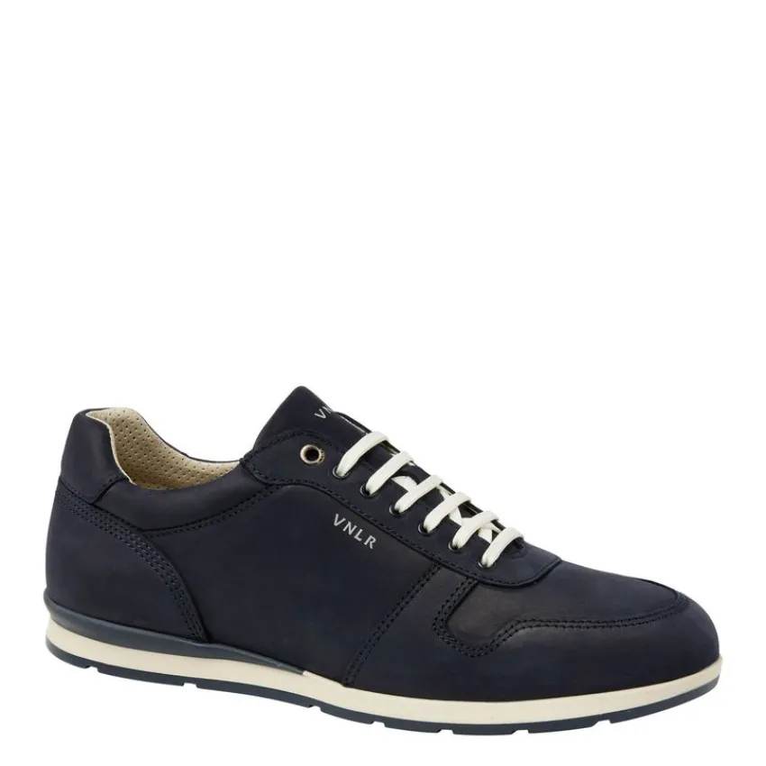 Blauwe nubuck sneakers van Manfield met uitneembare binnenzool en een vetersluiting. We adviseren als verzorging en bescherming de suède/nubuck spray in transparant.